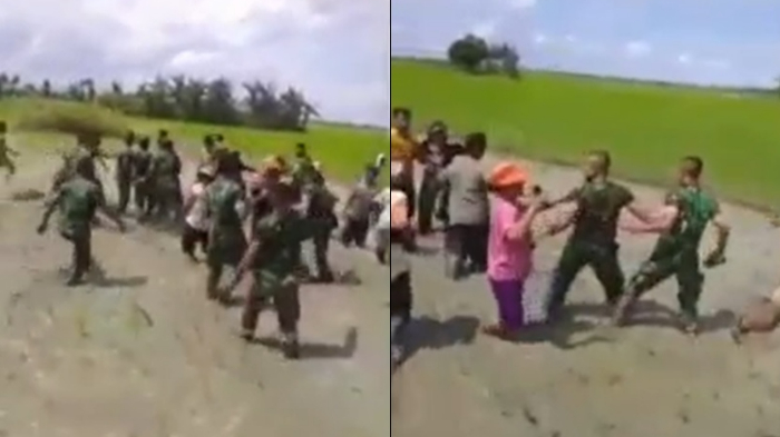 “Tolong....tolong kami. Tuhan tolong kami masyarakat dipukuli,” teriak pemilik akun Facebook yang menayangkan video viral bentrok TNI dan warga.