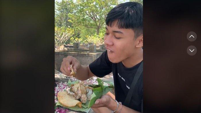 TRIBUNNEWSSULTRA.COM - Seorang pria konten kreator TikTok dengan nama akun @bak_prabu membagikan video memakan sesajen di kuburan.