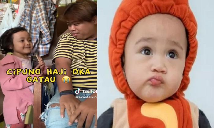 Kocaknya, bocah perempuan tersebut menyebutkan kata cipung haji oka.