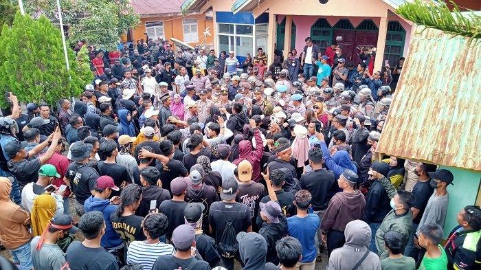 TRIBUNNEWSSULTRA.COM, KONUT - Masyarakat Kabupaten Konawe Utara (Konut), Sulawesi Tenggara (Sultra) geruduk Kantor PT Antam Tbk di Kelurahan Molawe, pada Kamis (9/2/2023).