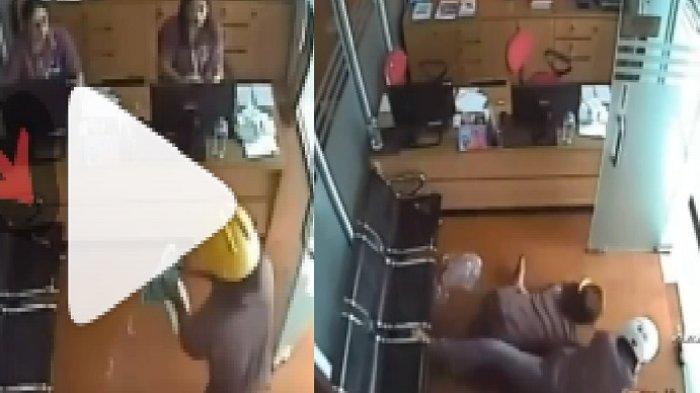 Dalam video viral nampak seorang pria tiba-tiba masuk di dalam ruko yang kala itu sedang ada dua karyawan wanita yang duduk.