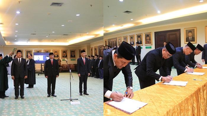 Pelantikan dan pengambilan sumpah jabatan berlangsung di ruang OR Kantor Kemenag Lapangan Banteng Jakarta, Jumat (16/6/2023).