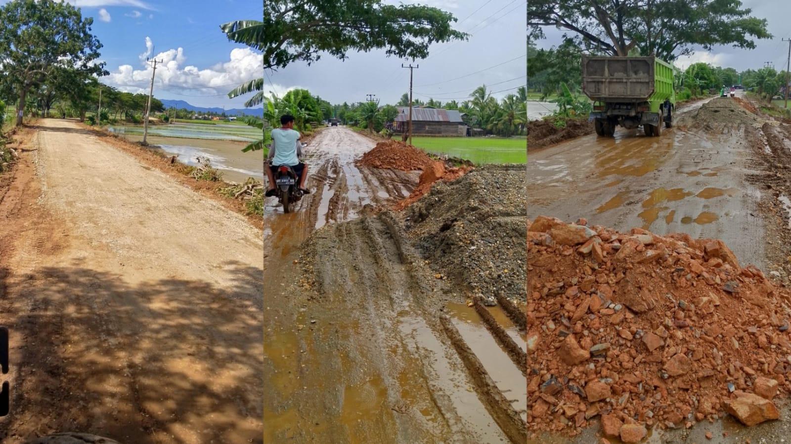 Perbaikan jalan kurang lebih sepanjang 1,5 KM di Jalan Poros Desa Linonggasai, yang diketahui alami kerusakan selama bertahun-tahun.