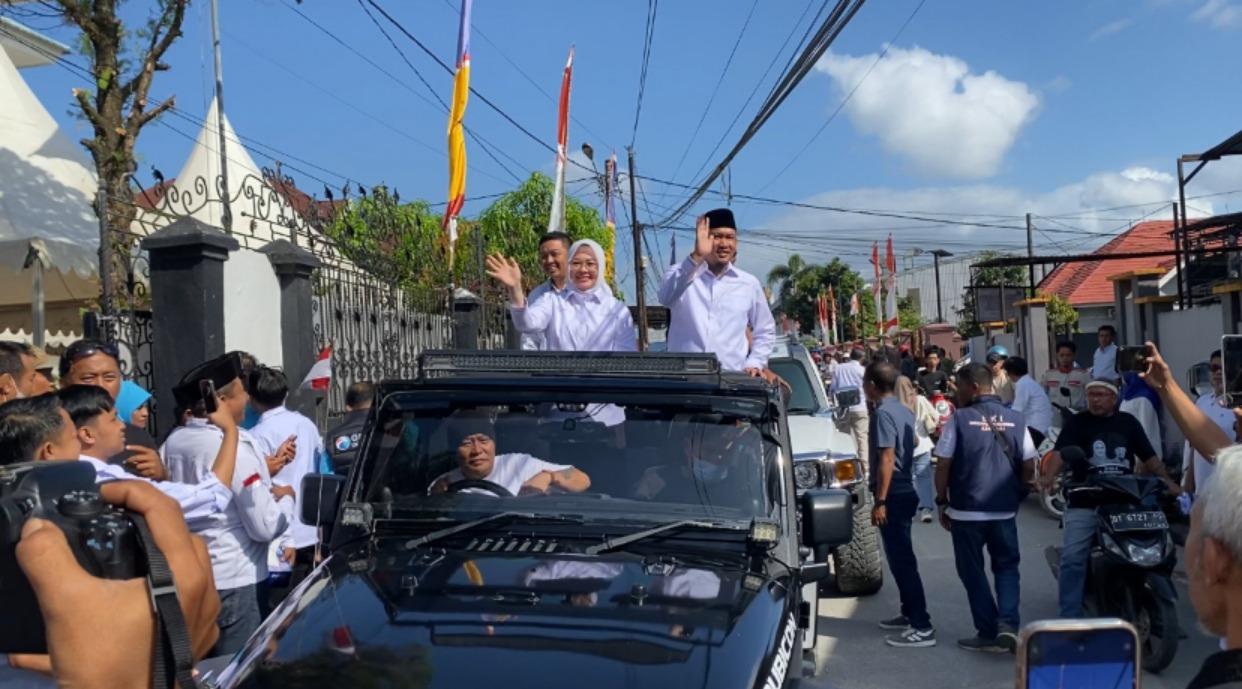 Siska Karina Imran dan Sudirman diantar ribuan simpatisan menuju Kantor KPU Kota Kendari, Kecamatan Puuwatu, Sulawesi Tenggara (Sultra).