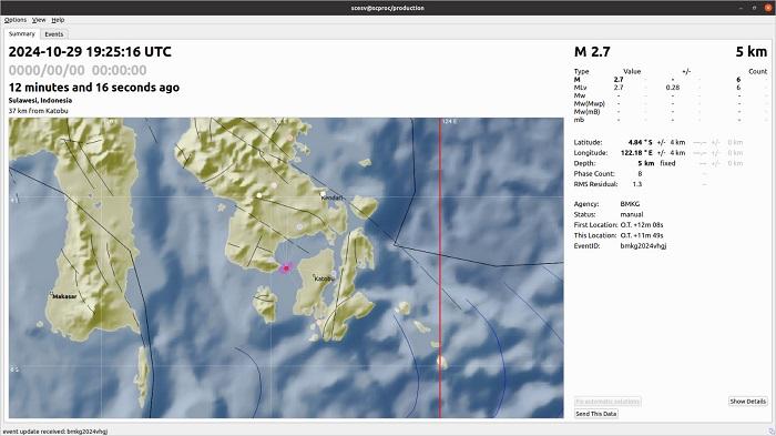 Gempa bumi di Kecamatan Kepulauan Masaloka Raya, Kabupaten Bombana, Sulawesi Tenggara (Sultra), pada Rabu (30/10/2024) berkekuatan 2,7 magnitudo.