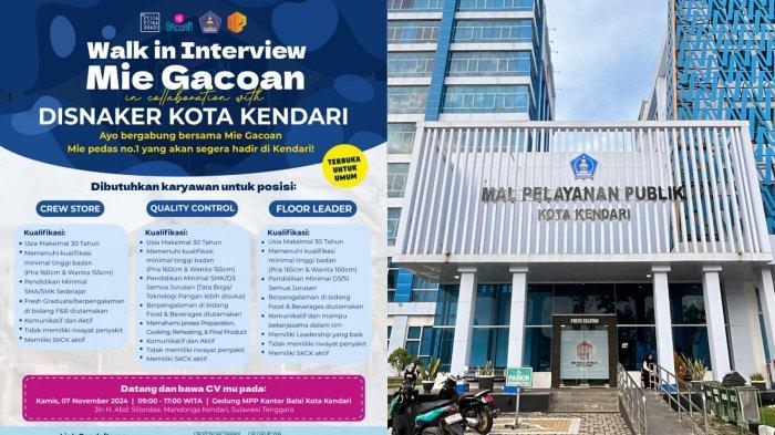 Mie Gacoan Adakan Walk In Interview di MPP Kendari 7 November, Disnaker Sebut Kuota 120 Orang