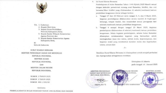 Isi surat edaran bersama tersebut terkait pembelajaran di bulan Ramadhan 2025.