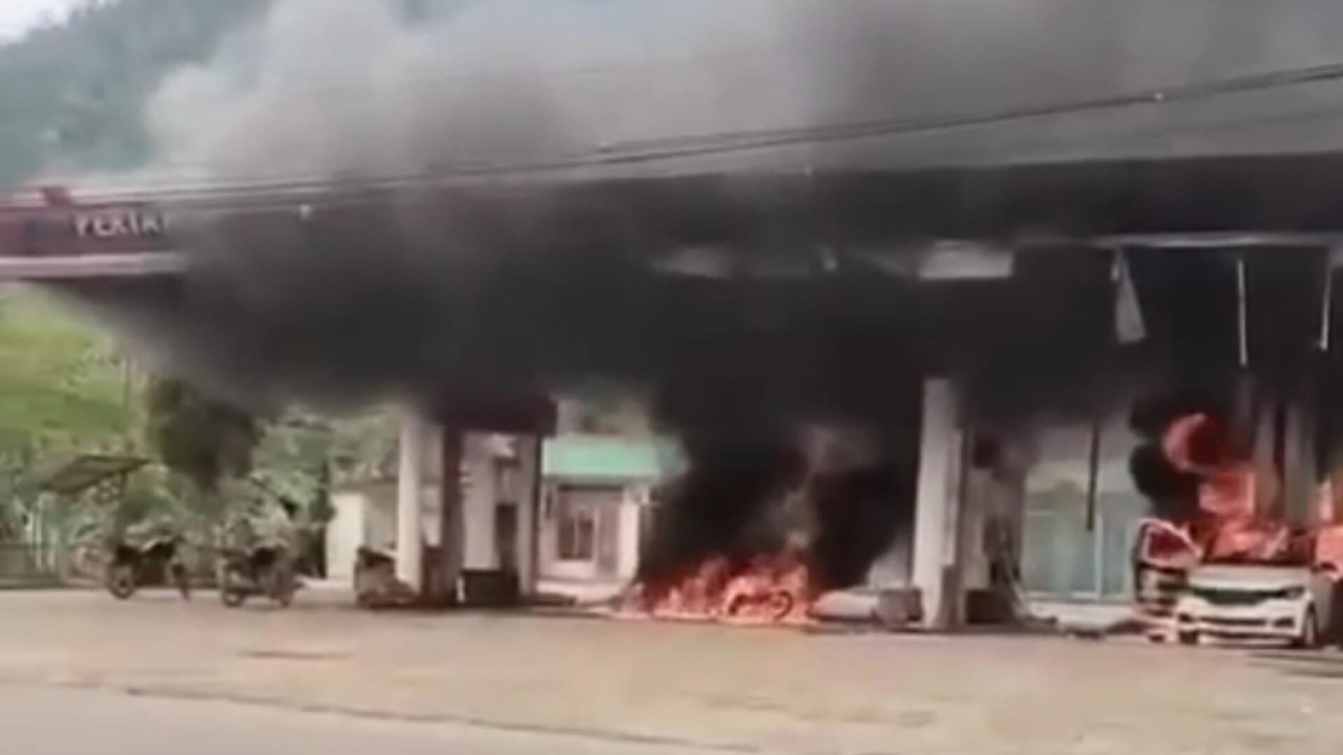 Sebuah mobil dan motor terbakar saat melakukan pengisian BBM di SPBU Andowia, Desa Lamondowo Kabupaten Konawe Utara, Provinsi Sulawesi Tenggara