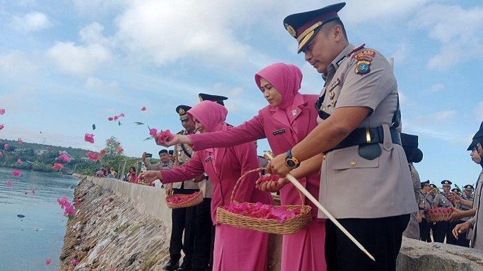 HUT ke-77 Bhayangkara, Polres Buton Tengah Gelar Upacara Tabur Bunga di Dermaga Lombe Buteng Sultra