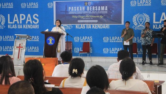 Perayaan Paskah 2024 di Lapas Kelas IIA Kendari, Provinsi Sulawesi Tenggara (Sultra), berlangsung di aula Sahardjo, Minggu (31/3/2024).