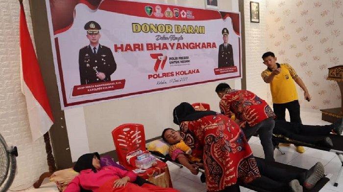 Polres Kolaka Sulawesi Tenggara Peringati HUT Bhayangkara ke-77, Personel TNI Ikut Donor Darah