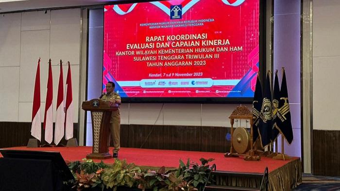 Kementerian Hukum dan HAM atau Kemenkumham Sulawesi Tenggara (Sultra) menggelar rapat koordinasi di salah satu hotel di Kota Kendari, Selasa (7/11/23)